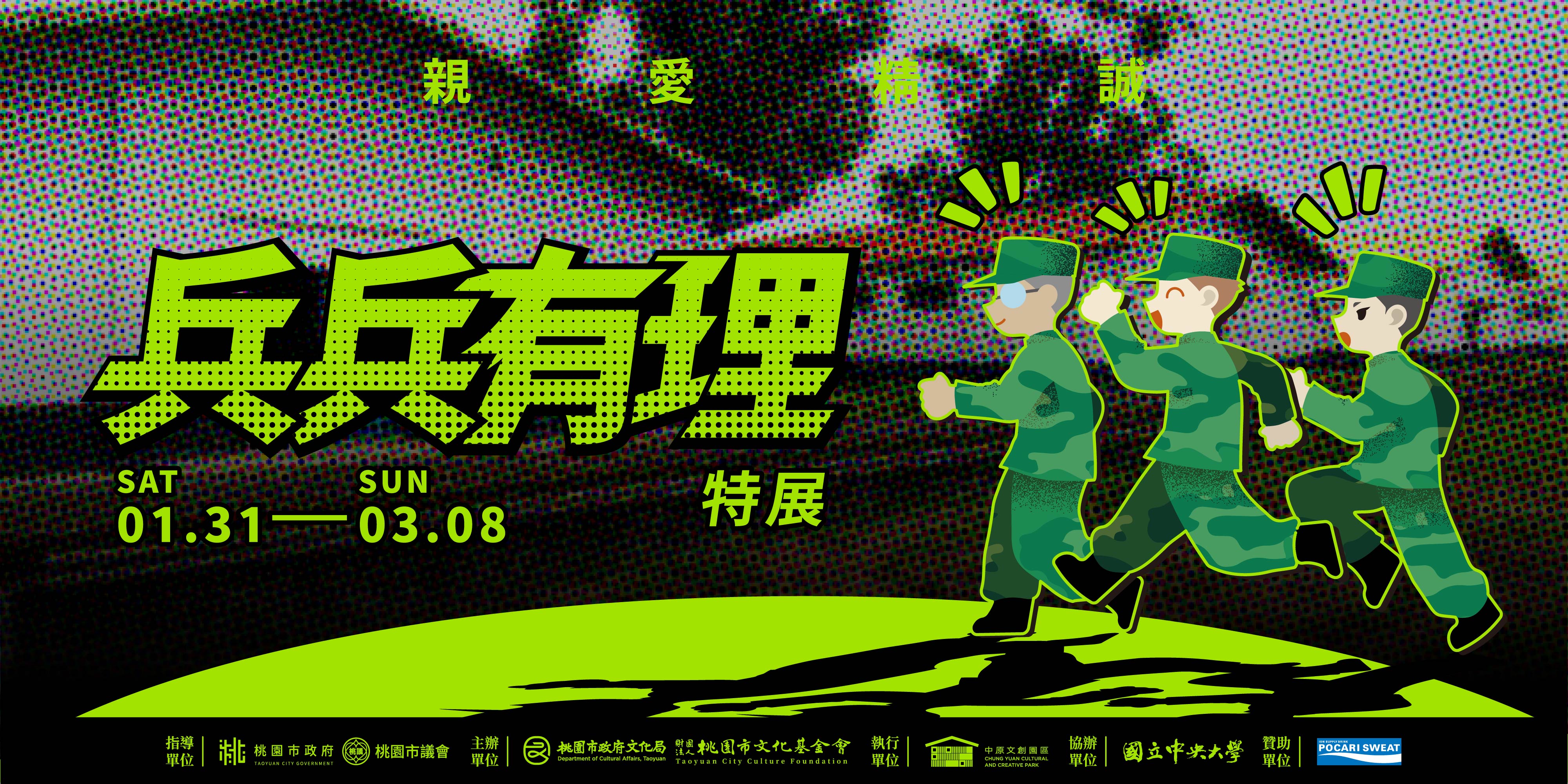 中原文創園區曾是北部重要的軍事補給基地,承載著深刻的軍事記憶痕跡。 《兵兵有理》特展以軍隊為背景、新兵訓練為起點,帶領觀眾回味及認識軍旅文化,亦找尋時代變遷的共同回憶。 本展以中原文創園區自創漫畫《613菜鳥日記》為敘事主軸,透過角色對話,引導觀眾走進部隊日常,從軍中語言、伙食、服裝文化、訓練過程到制度規範,以趣味互動的方式,細品從軍的生活細節。 同時回顧園區從軍事基地轉型為文化創意場域的歷程,邀請觀眾思考空間轉型、歷史再利用與集體記憶之間的關係。